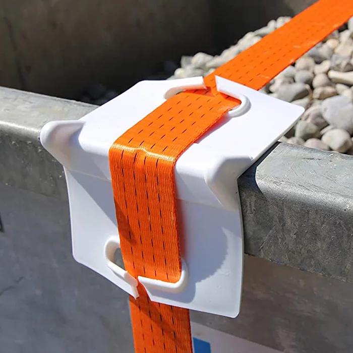 Угловые накладки предназначены для операций с грузами, имеющими прямые внешние углы. Форма накладки увеличивает площадь прилегания, позволяет эффективно распределять нагрузку на край груза, защищая строп от износа, а груз от повреждения сверхпрочной полиэстеровой лентой. Доступны к заказу две модификации: стандартная для лент 50 и 100 мм и усиленная для лент шириной 50 мм.