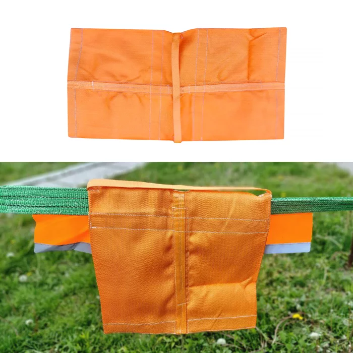 Тросогаситель TAKELAG оснащен универсальной системой липучек, позволяющей обхватить буксировочный канат или текстильную ленту и предотвратить его сползание при вертикальных углах. Конструкцией изделия предусмотрено 4 (четыре) отдельных кармана, которые для утяжеления тросогасителя обычно наполняют песком, гравием, мелкими метизами или другой сыпучей массой. В качестве материала для изготовления тросогасителя применяется высокопрочная полиэстеровая лента.