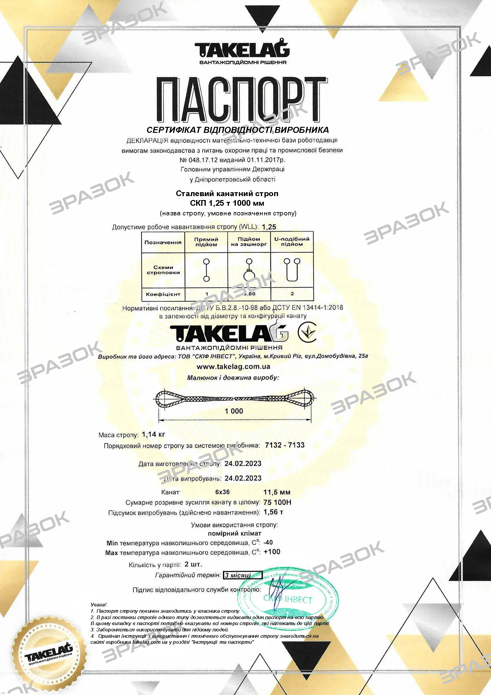 ІНСТРУКЦІЯ СТРОПИ КАНАТНІ