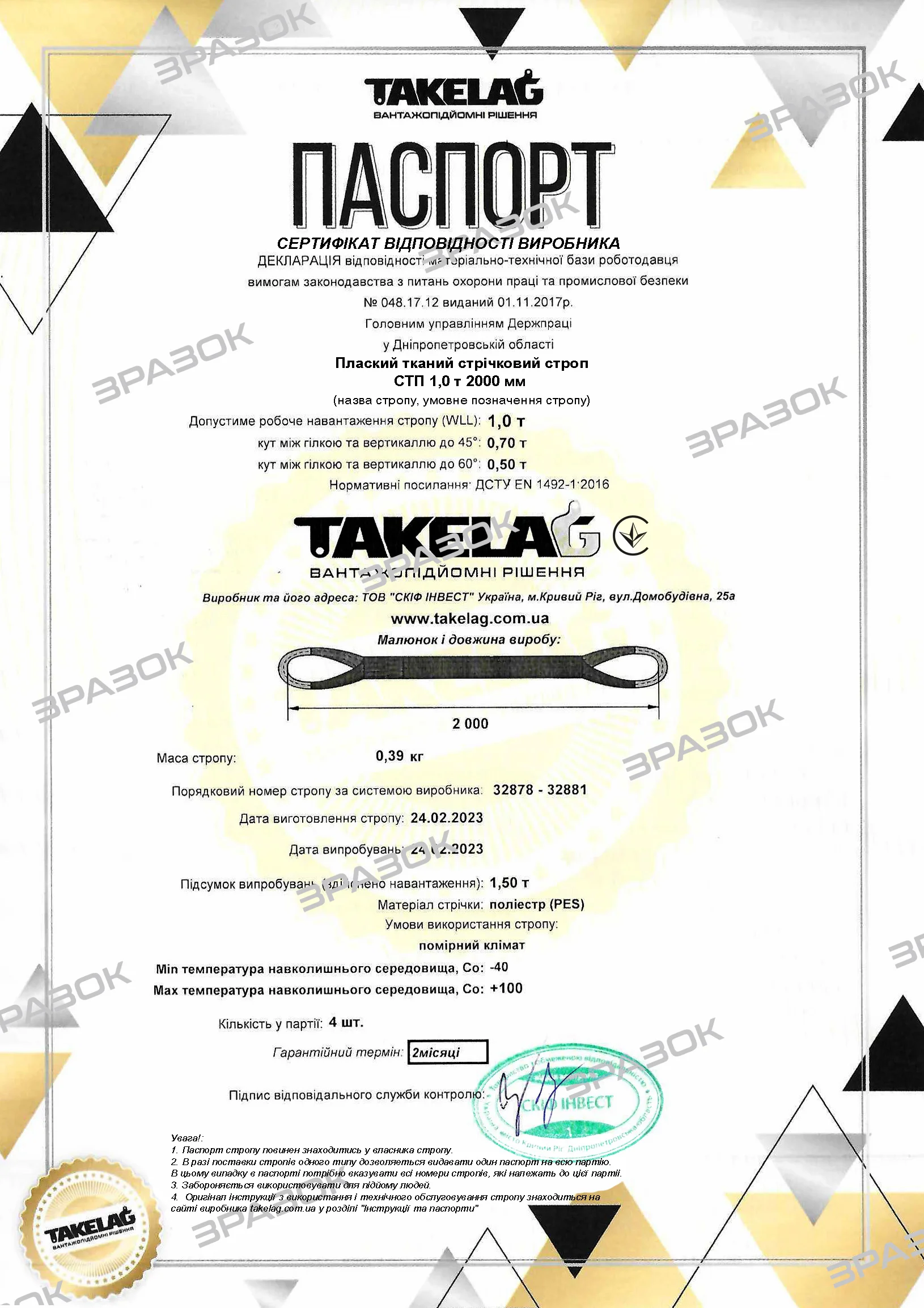 ПАСПОРТ СТРОП ТЕКСТИЛЬНИЙ