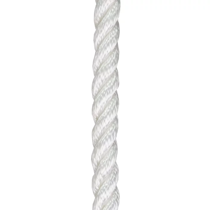 Трехпрядный капроновый канат не гниет, не подвергается негативному воздействию морской воды и щелочей, что позволяет использовать изделие в мореходстве в качестве швартовых канатов, такелажа на рыболовных тралах и т.д. Канат имеет привлекательный внешний вид, поэтому его часто используют для декора, оформления интерьера, внутренней отделки, изготовления поделок (handmade). К недостаткам можно отнести низкую устойчивость к кислотам и способность накапливать статическое электричество, что усложняет работу с кручеными полиамидными канатами. Поставляется в бухтах по 50 и 100 метров.