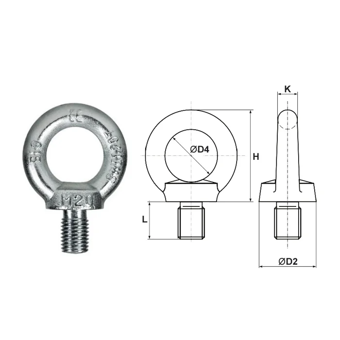 | Артикул | Резьба | Г/п, т | Ø D2 | Ø D4 | L | K | H | Масса, кг |