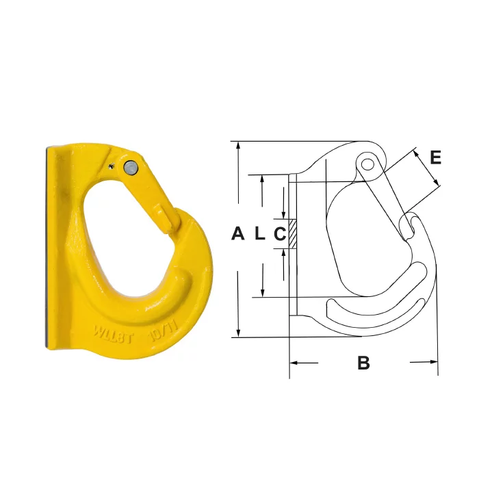 Даний вид гаків має широке застосування в промисловості та транспорті, оскільки може бути приварений практично до будь-якої рівної металевої основи. Наприклад, до ковша екскаватора, навантажувача, рами автомобіля і т.д. Коефіцієнт запасу міцності: 4:1. Матеріал: міцна легована сталь. Порошкове фарбування. Відповідає стандарту: ДСТУ EN1677-4:2017.