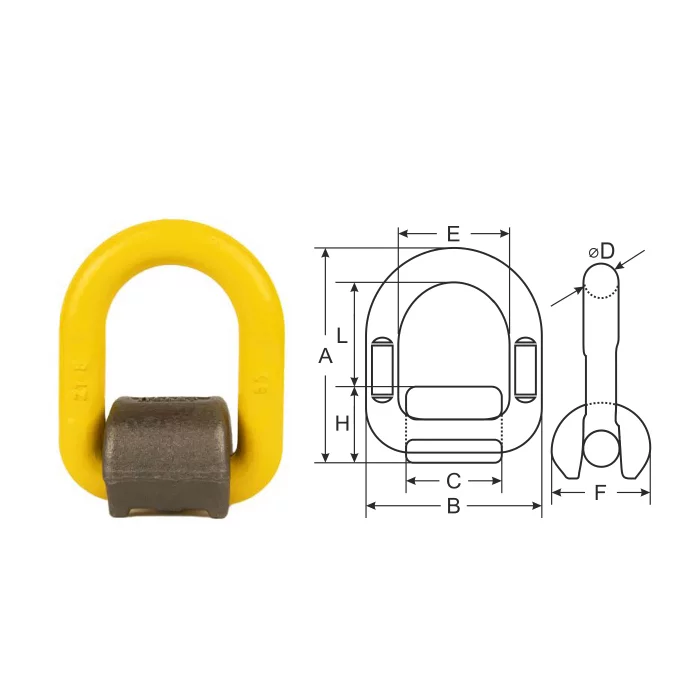 Приварювальне вухо складається з двох окремих елементів: ланки та приварного майданчика. Форма майданчика має відповідні виїмки біля своєї основи, що дозволить зварювальнику коректно накласти зварювальний шов. Після встановлення, виріб є зручною складною ланкою. Область застосування досить велика. Коефіцієнт запасу міцності 4:1. Матеріал: міцна легована сталь. Порошкове фарбування. Відповідає стандарту: ДСТУ EN1677-4:2017.