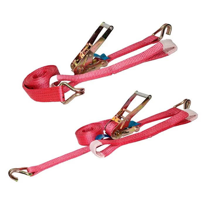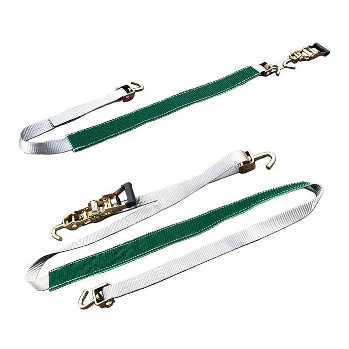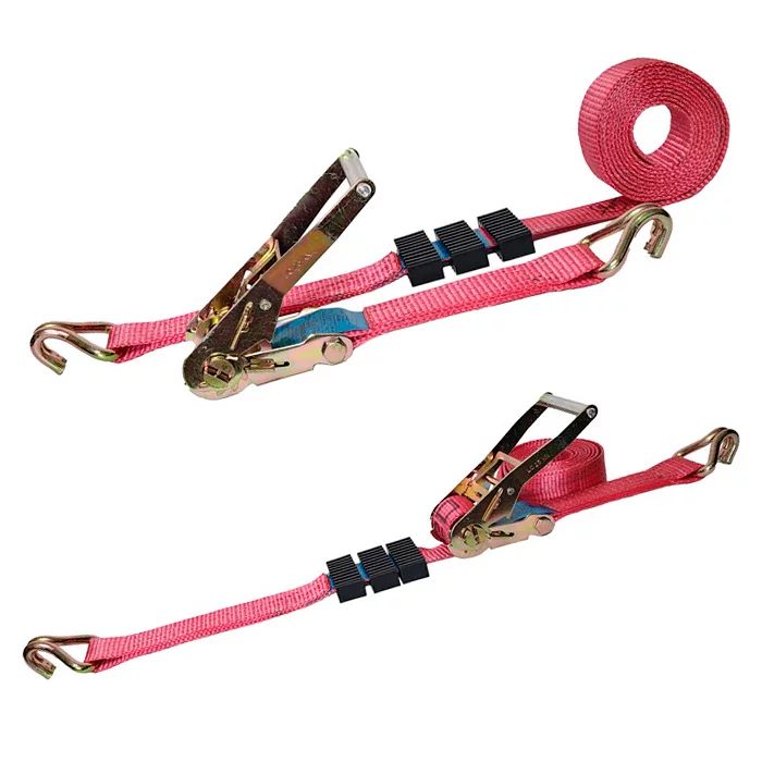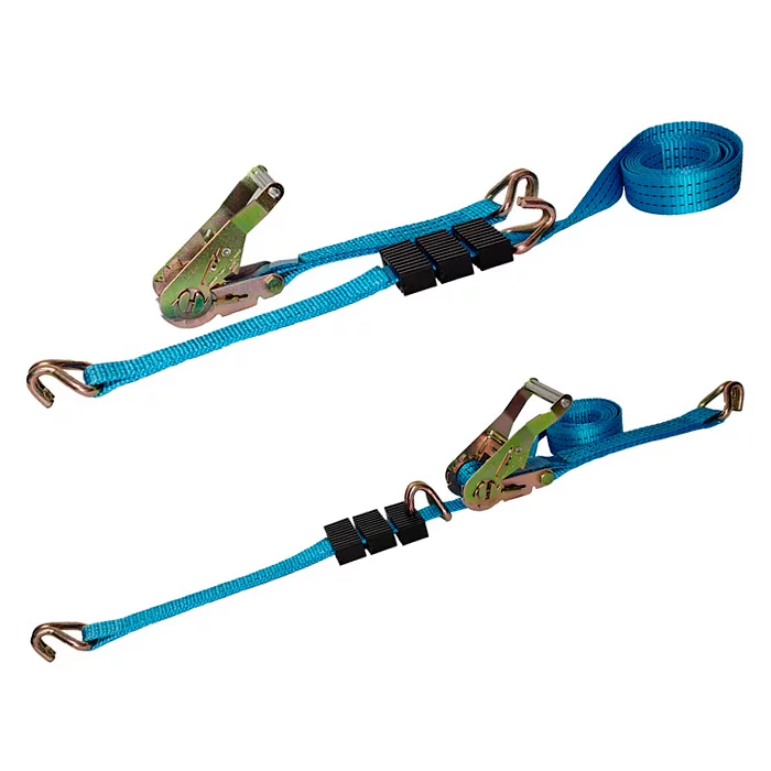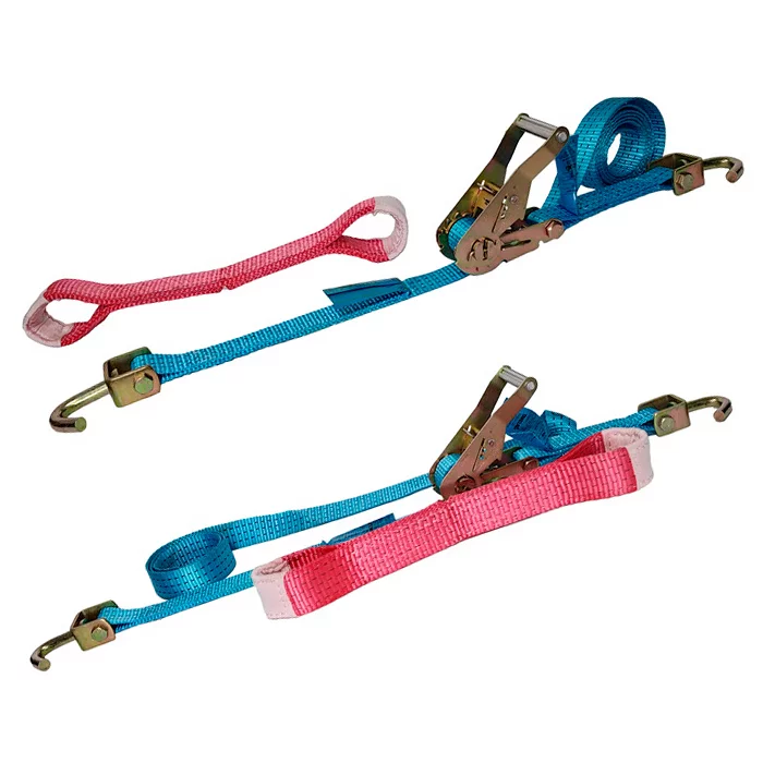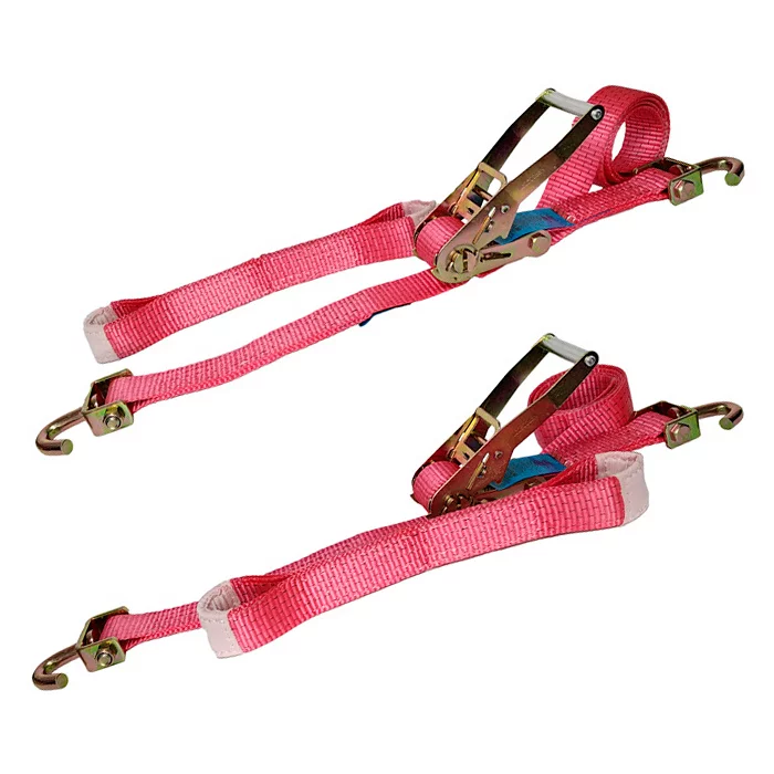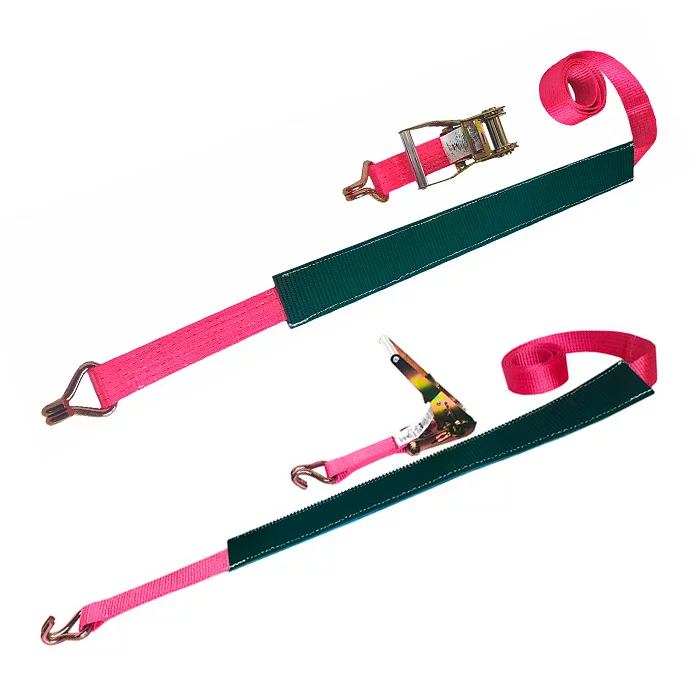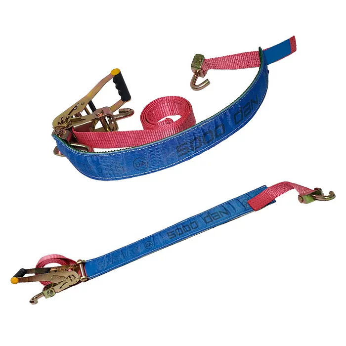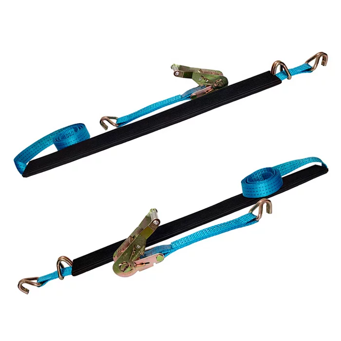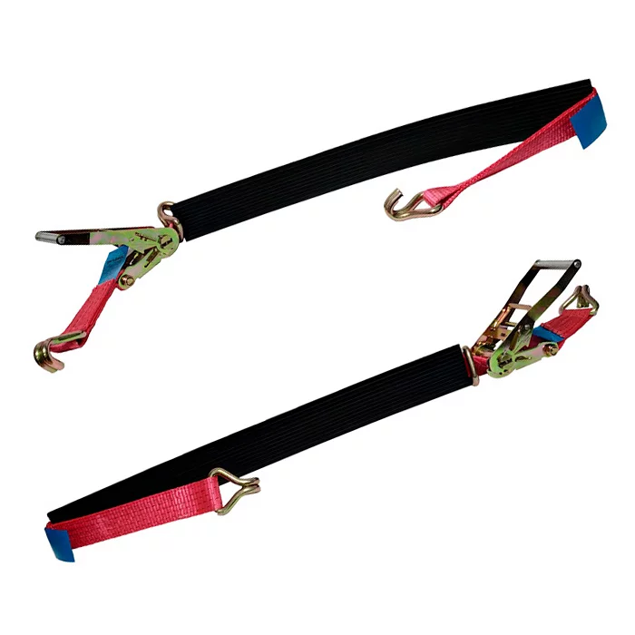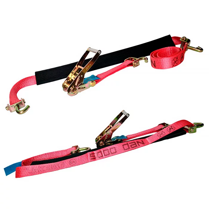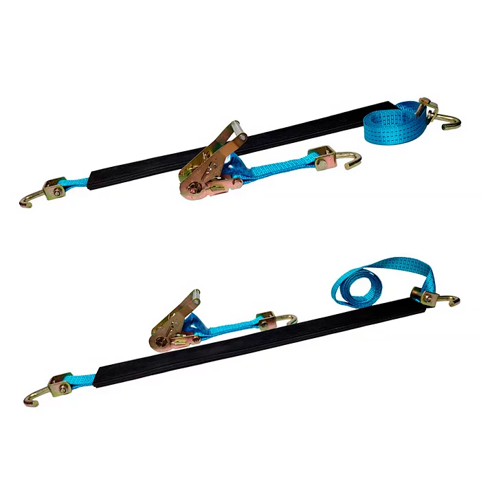 Основой для изготовления стяжных ремней для автовозов является сверхпрочная тканая полиэстеровая лента шириной 38 и 50 мм и рабочей нагрузкой 3,0 или 5,0 т, которая эффективно противодействует динамическим нагрузкам во время транспортировки авто. Ремни для фиксации авто крепятся к платформе с помощью трех J-образных крюков разных модификаций. Натяжение ленты осуществляется храповым механизмом, который надежно прижимает колеса автомобиля к платформе, а дополнительные резиновые накладки разных видов помогают предотвратить самовольное смещение ленты и защищают ремни от истирания.