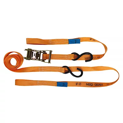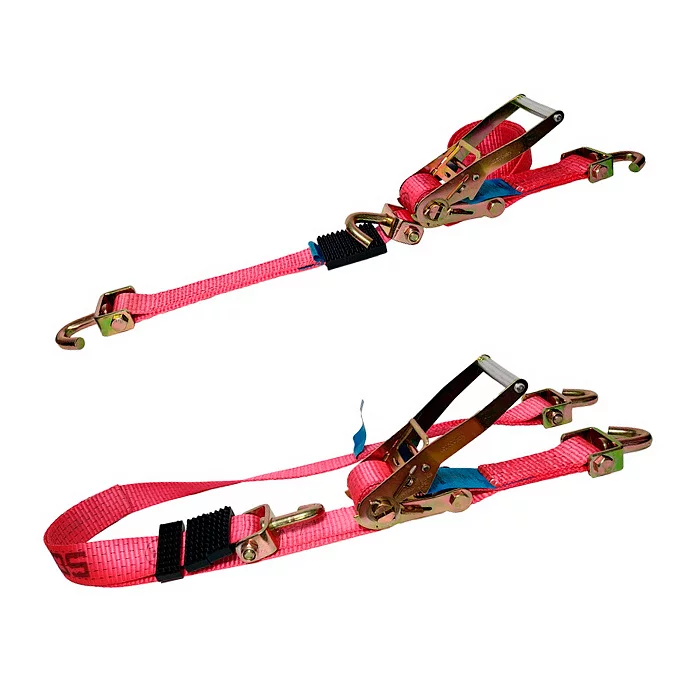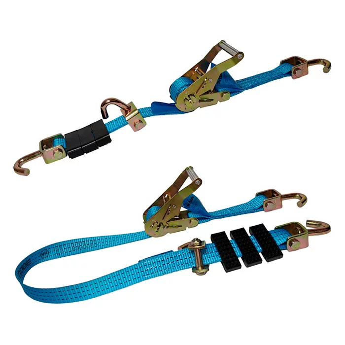 Специализированный вид этой продукции – ремни для транспортировки мотоциклов, которые изготавливаются из полиэфирной ленты шириной 25 мм и рабочей нагрузкой 1,5 т. Фиксация мототранспорта осуществляется по тому же принципу с использованием S-образных крюков в ПВХ оболочке и соответствующих по нагрузке храповых механизмов.