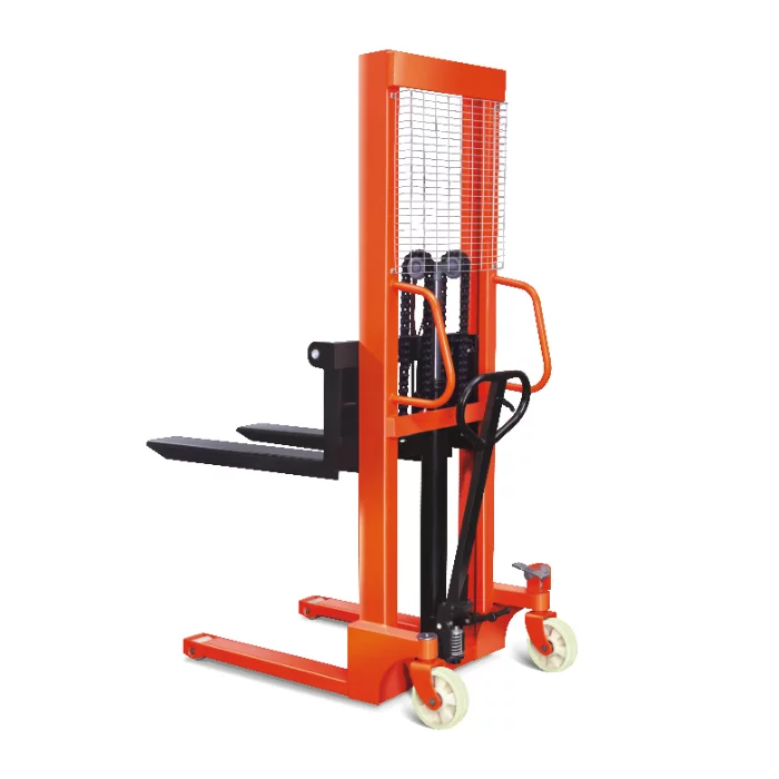 Підйом та укладання піддонів здійснюється за допомогою гідравлічного приводу. Швидкість опускання вил контролюється вручну. Переміщення штабелера здійснюється за допомогою м'язової сили оператора та вимагає від нього певних навичок та уваги до безпеки під час роботи. Вилковий штабелер оснащений металевою сіткою для захисту оператора від ланцюгів, що обертаються, і обладнаний стоянковим гальмом. Експлуатація такого обладнання не бажана на нерівних та нетвердих поверхнях.
