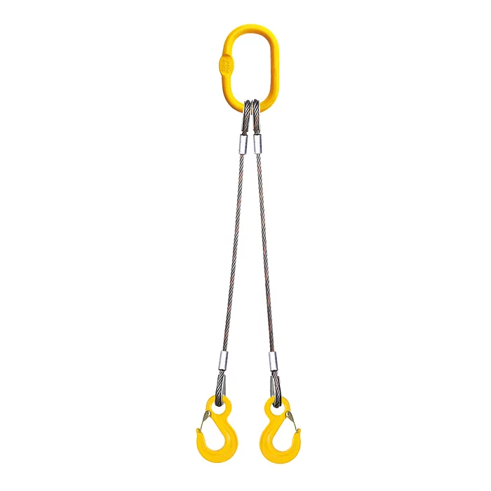 2СК (строп канатный двухветвевой) имеет две канатные ветви объединённые овальным звеном для навешивания на крановый крюк и концевые захватывающие элементы с другой стороны для строповки груза, который имеет две точки крепления.