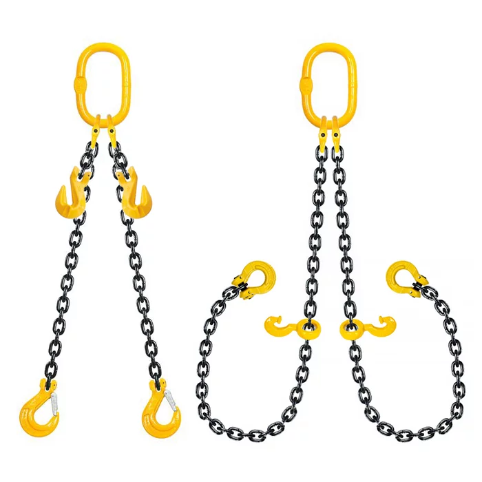 2СЛ (строп ланцюговий двогілковий) має дві ланцюгові гілки об’єднані овальною головною ланкою для навішування на крановий гак та кінцеві захоплюючі елементи з іншої сторони для стропування вантажу, що має дві точки кріплення.