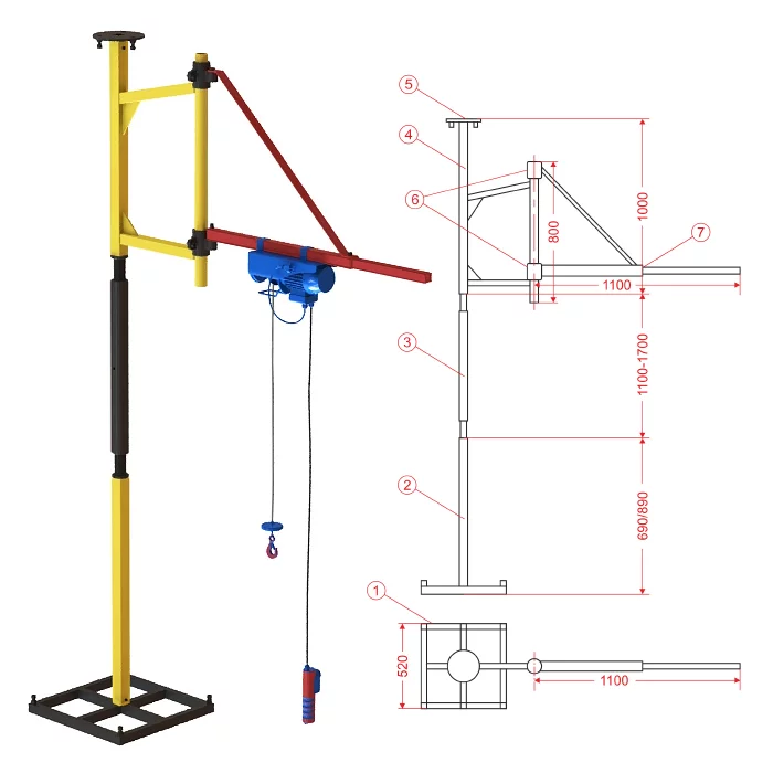 5. Вертикальна розпірна стійка "підлога-стеля" для електричних талей