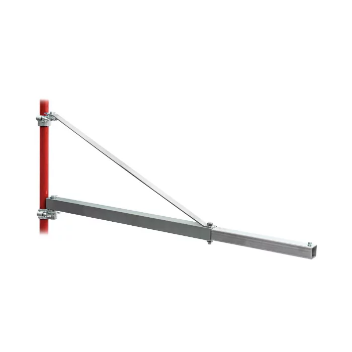 Пропоноване рішення у вигляді виносних поворотних консолей призначене для монтажу електричних талей типу PA на вертикальні труби Ø48 мм більшості будівельних риштувань, що дозволяє механізувати процес та значно полегшити роботу будівельників при організації безперервної подачі на висоту будівельних матеріалів невеликих мас. Поворотні консолі забезпечує круговий рух закріпленої до неї талі в секторі 180° та по радіусу, що дорівнює її довжині (750-1100 мм), що дозволяє оператору талі піднімати вантажі вертикально із землі та затягувати їх прямо на помости лісів. Кріплення консолі до труб здійснюється за допомогою надійних хомутів. При необхідності консоль може бути швидко демонтована і встановлена в інше зручніше місце. Консолі складаються з одно- або двосекційної несучої квадратної труби, діагональної розпірки та двох хомутів.