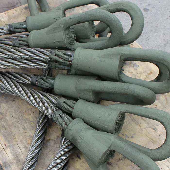 - Заливання розплавленим металом із використанням сплаву ЦАМ (цинк-алюміній-мідь-магній). Є традиційним методом фіксації кінців каната у муфтах;