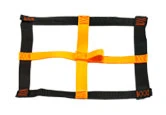 Кріпильні сітки виготовляються з тієї ж поліестерової стрічки, як і звичайні стяжні ремені. Ширина таких сіток, як правило, становить 3 метри, що дає можливість накрити і закріпити будь-який вантаж в кузові вантажного автомобіля, а її довжина може бути будь-якою, виходячи від вимог Замовника і кратних розміру однієї ячейки. Для зручного зачеплення до стяжних ременів, як правило, кріпильна сітка оснащується по кутах і периметру такелажними кільцями. Опціонально, замість кріпильних кілець, сітка може бути укомплектована пряжками з рухомим ременем і крюком в ПВХ-оболонці. В якості натяжителей сітки компанія «СКІФ ІНВЕСТ» пропонує використовувати кільцеві ремені з замком-затискачем або звичайні стяжні ремені зі стрічки шириною 25 - 50 мм.
