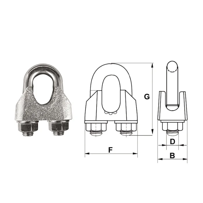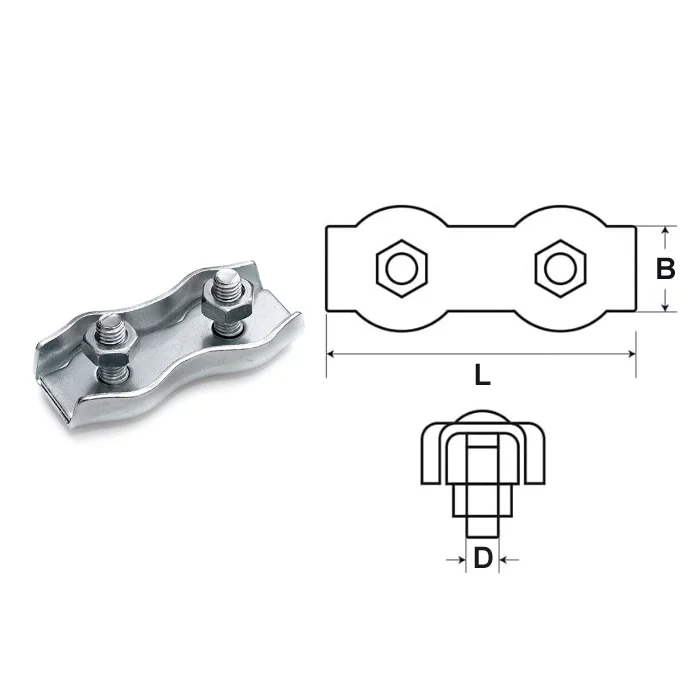 Це широко використовуваний й популярний тип монтажних затискачів, який застосовується з канатами та тросами у всіх сферах життєдіяльності, окрім вантажопідйомних операцій. Перевагами цих виробів є: доступна ціна, простий монтаж та універсальність використання.