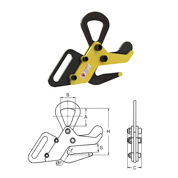 | Артикул | Г/п, т | A | B | C | H | S | F | Масса, кг |