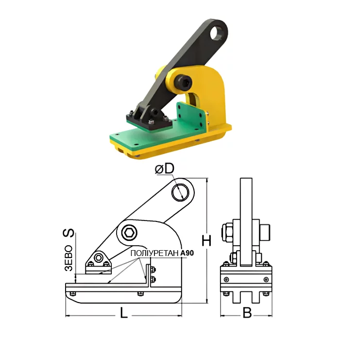 Материал изделия: сталь 09Г2С. Коэффициент запаса прочности пары захватов: 4:1. Стандарт: EN 1677, ДСТУ EN 13155.