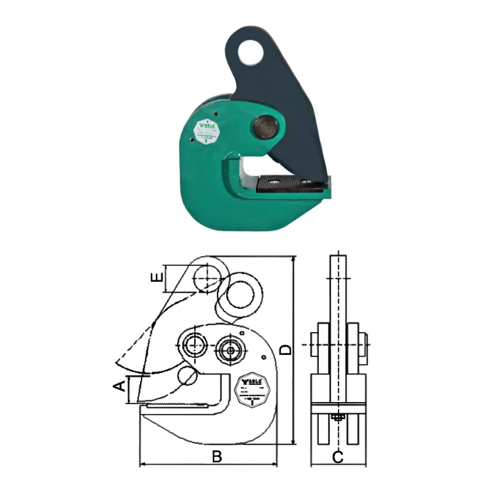Универсальная и облегченная конструкция горизонтального захвата от компании ABLE (США) не требует установки дополнительной скобы. Широкое отверстие литого прижимного язычка позволяет производить прямое зацепление захватов многоветвевым стропом. Изделия должны работать в паре. При определенных условиях работы с профильным прокатом возможно использование одиночного устройства. Каждый захват протестирован нагрузкой, которая в два раза превышает грузоподъемность устройства.