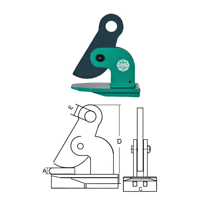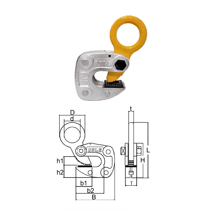 Распространенный тип горизонтального захвата с увеличенной подошвой и кнопкой-фиксатором в исполнении американского бренда ABLE. Характеризуются повышенной износостойкостью, более высоким качеством обработки металла и сборки. Захваты ABLE разработаны для регулярного использования в умеренно-тяжелом эксплуатационном режиме. Протестированы нагрузкой, которая в два раза превышает грузоподъемность устройства. Захваты должны использоваться только в паре и комплектоваться такелажной скобой.
