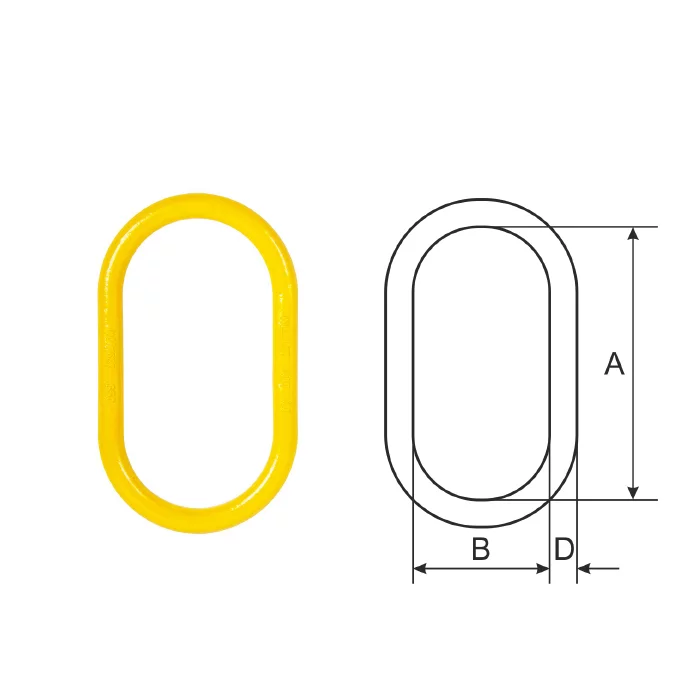 Ланки цього типу використовують як кінцеві та/або з'єднувальні елементи ланцюгових строп. Відрізняються універсальністю і широким спектром застосування. Є конект-парою гакам-чокерам у конструкціях ланцюгових строп-удавок. Коефіцієнт запасу міцності: 4:1. Матеріал: легована сталь. Стандарт: ДСТУ EN 1677-4.