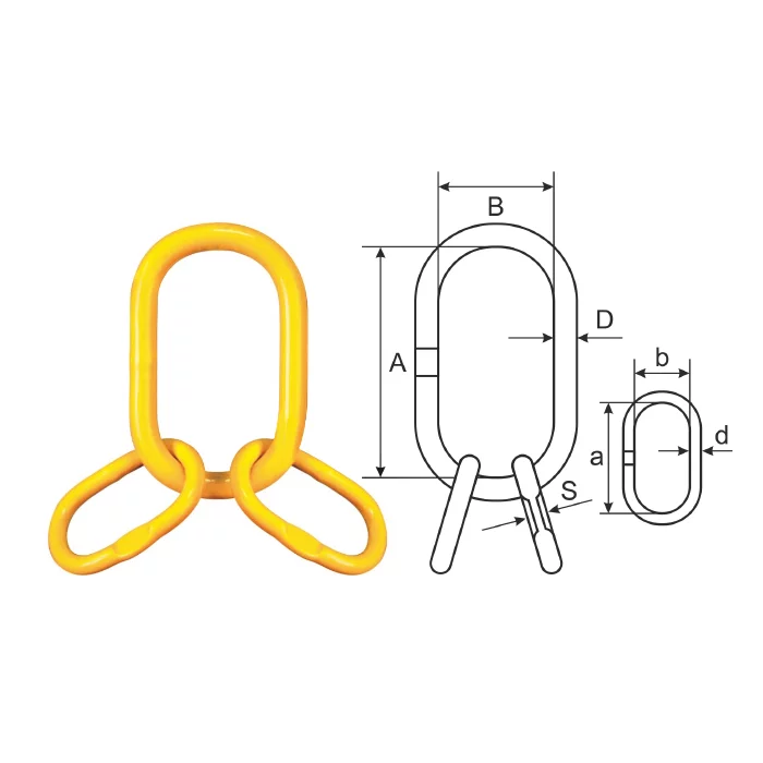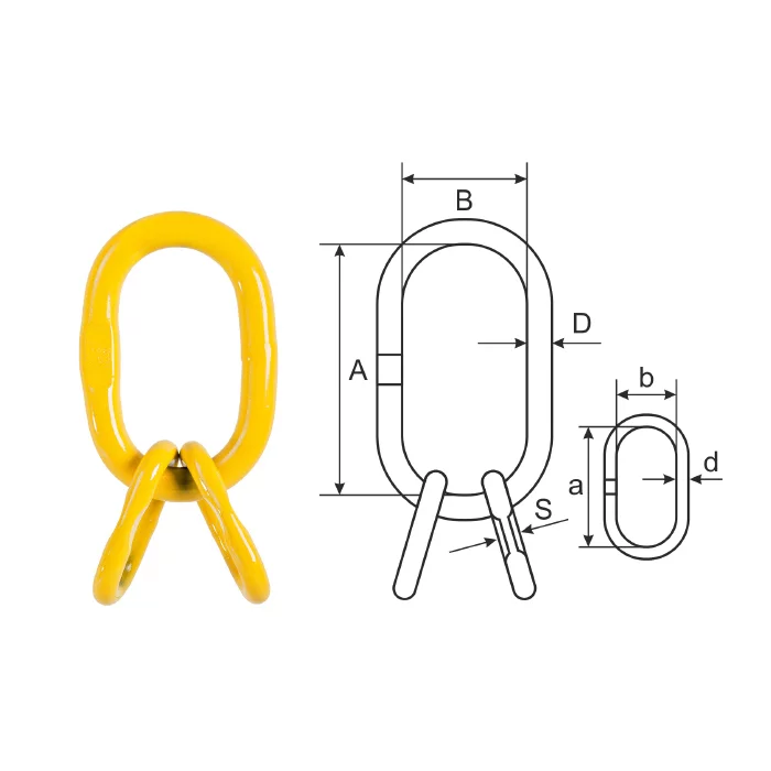 Універсальний з'єднувальний компонент для складання ланцюгових строп. Найчастіше використовуються для з'єднання головної майстер-ланки з ланцюговими гілками. Коефіцієнт запасу міцності: 4:1. Матеріал: легована сталь. Стандарт: ДСТУ EN 1677-4.
